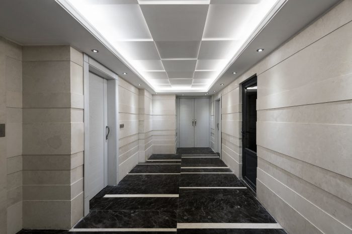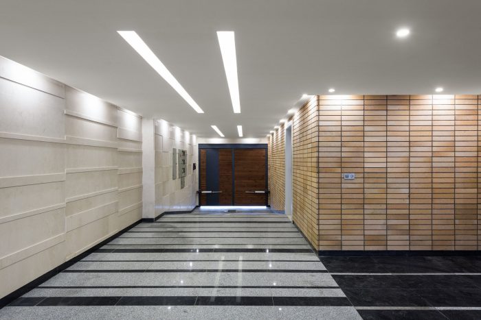 In fact, the elements of the facade are not separated from the interior space but act as part of that. In other words, by putting aside the facade and entering the project, the use of compatible materials, both inside and outside the project, is clearly visible.