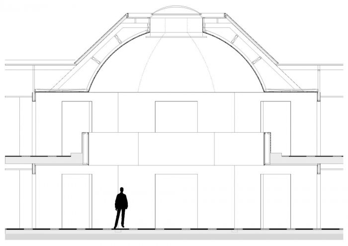 该建筑现有的基本形式几乎不明显,必须重新解释和概念化,以加强市政厅在村庄周围的空间整合。与意大利文艺复兴时期的许多项目类似,中心思想是用一个新的、更有纪念意义的外墙将建筑完全包裹起来,以强调建筑的公共性和代表性,从而使建筑成为建筑。此外,新的外墙不仅被视为改善外部印象的工具,而且还对内部空间的质量和政府雇员的工作流程产生积极的影响。
