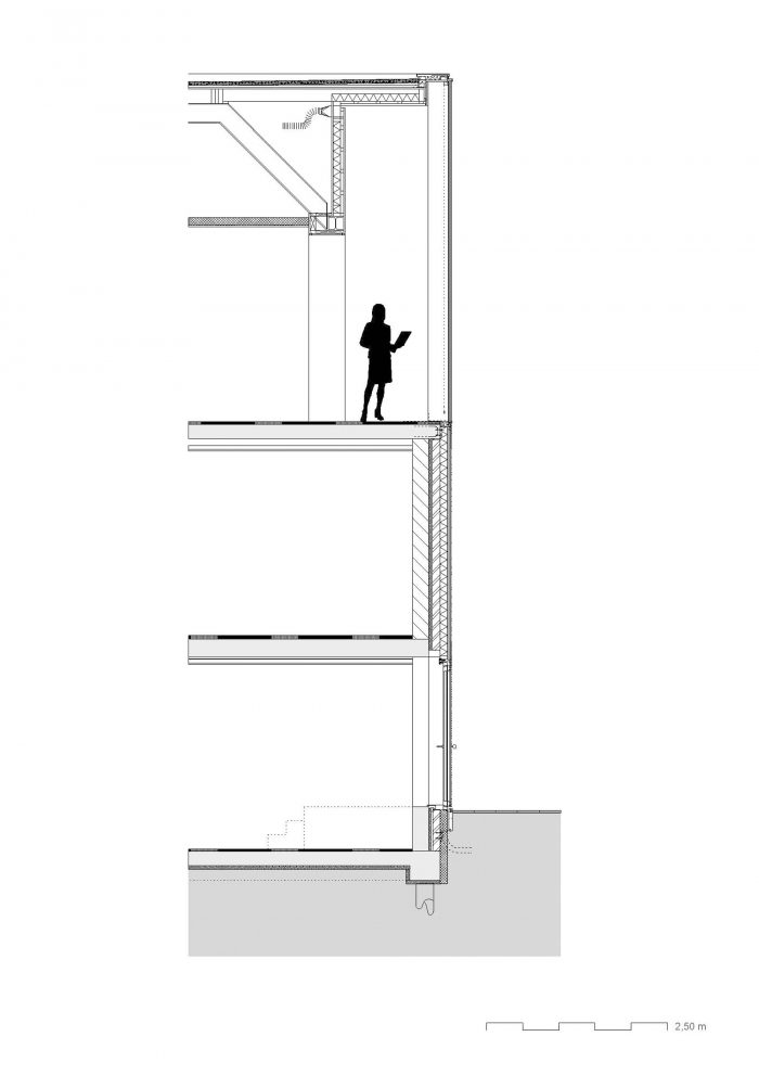 外部更新的最后一步是细化建筑的比例。所有的外部技术设施,如水管、通风网和遮阳网都被移除。一些窗户被调整。窗格被扩大到每个窗户1.8米x1.6米的格式。框架是带有太阳能玻璃填充物的丝状 "旋转框架"。内侧安装了高性能的纺织屏,以提供额外的防晒。