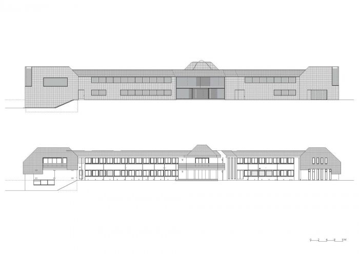 Above all, the goal of the transformation was to improve the overall impression of the poorly designed and run- down building. For these reasons, in 2009 the municipality organized a European architecture competition, which was won by Atelier Kempe Thill from Rotterdam. While at that moment it was still intended to extend the existing building, this was given up due to financial reasons during the planning phase.