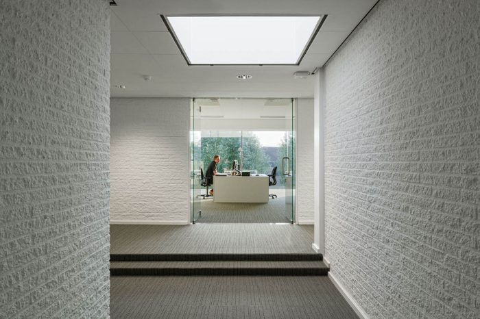 The municipality of Borsele in the Dutch province of Zeeland was founded in 1970 by the merging of 13 villages. Heinkenszand was assigned centre of this newly formed administrative unit and a new town hall was built for the 25.000 inhabitants. More then 30 years after the opening, the building was in need of rehabilitation. On the one hand, the façade as well as the roof weren’t fully waterproof anymore. Furthermore, the building had to undergo an asbestos abatement to adapt to modern building standards. On the other hand the interior of the building had to be renovated in order to create a flexible and modern office environment. The building climate had to be improved in order to reduce energy loss.