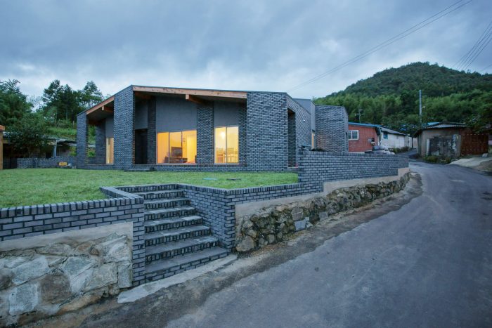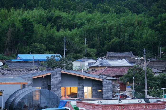 在整个基本的设计会议中,由于保温、降雪量以及与附近的山形和小镇巷道的协调,建议采用斜屋顶,结构也自然地从铁混凝土转向轻质框架木。通过观察附近的房屋,我们建议像镇上的其他房屋一样,用传统的砖头完成一层的斜屋顶房屋,并配有Toonmaru(传统韩式房屋中沿着房间外侧的狭窄木质门廊),并通过制作低矮的围栏来方便与邻居的交流。Toenmaru很小,但却是一个有特色的空间,可以用屋顶的屋檐来控制阳光,并且可以通过附近的开放空间来聚集人群。