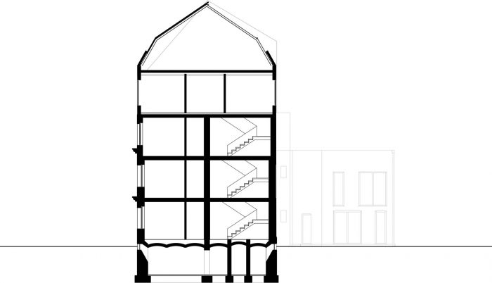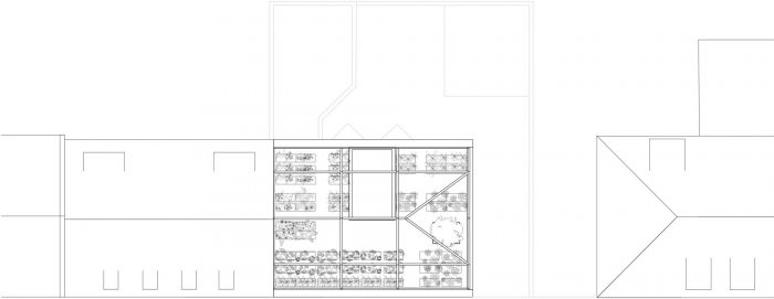 The result is a new and unique urban typology, that has a lot of potential for future housing. The steel structure that frames the rooftop garden is a nod to the original roof shape of the pre-war architecture. From a heritage point of view, the architect chose to recreate the shape of the original eaves with steel beams, resulting in a poetic quote of a space that was lost.
