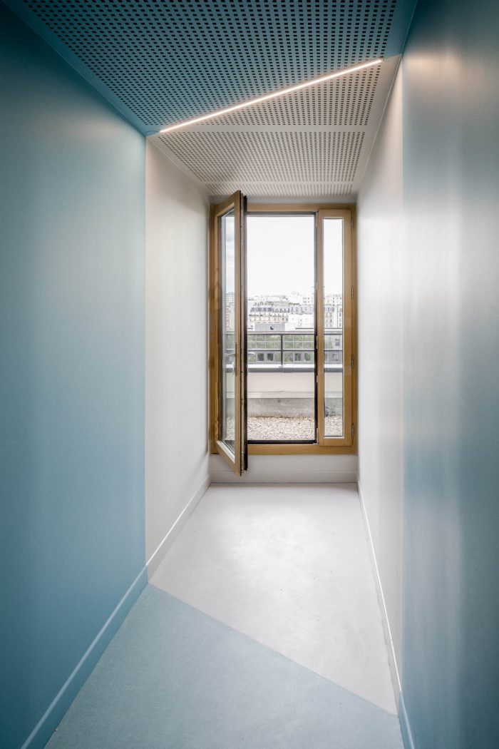 Participating in the urban renewal of the boulevard Ney and the Porte de Clignancourt, this new building is split into two volumes linked at the bottom by a shared platform occupied by the nursery. Here, this densification of a lot already in existence since the 70s aligns the built part with the boulevard, rendering it a tighter and livelier place.