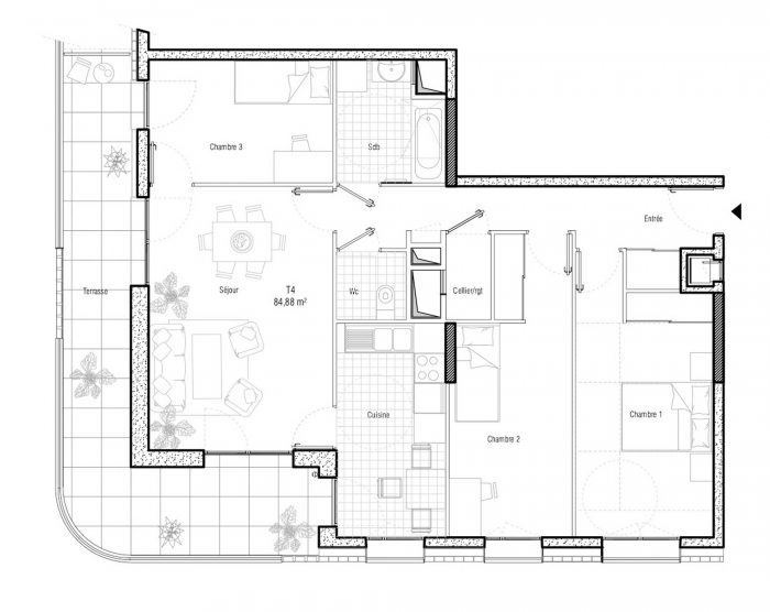 Respectful of the modernist architecture of the existing towers, the positioning of the two beacons of 6 and 9 stories facing each other, and their splicing in staggered setbacks, create views for the existing towers as well as the new apartments and increases sunshine on the nursery’s courtyard. The sliding effects result in the floors being treated as strata tapering the volumes.