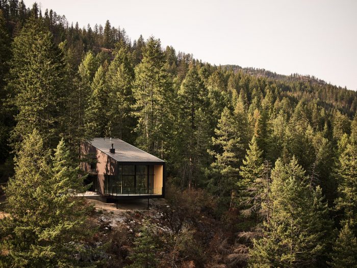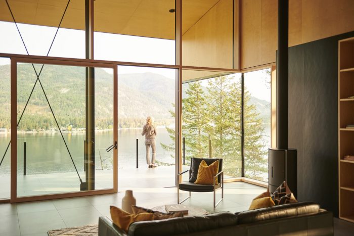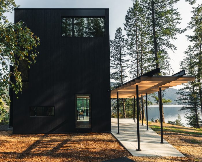 Perched above a glacial lake in southern British Columbia, Boundary Point Cabin is a gathering place for an extended family to reconnect each summer. Our clients, a young family who enjoy seasonal visits to the lake, desired a home that opened to the landscape and provided flexibility for varied activities. The family had owned land above the lake, which included a small existing cabin, for several years, and recalled being drawn to the unique characteristics of the property, its panoramic views, and brilliant reflections off the water below.