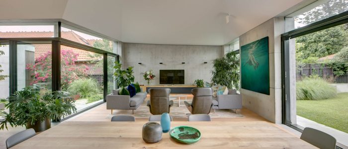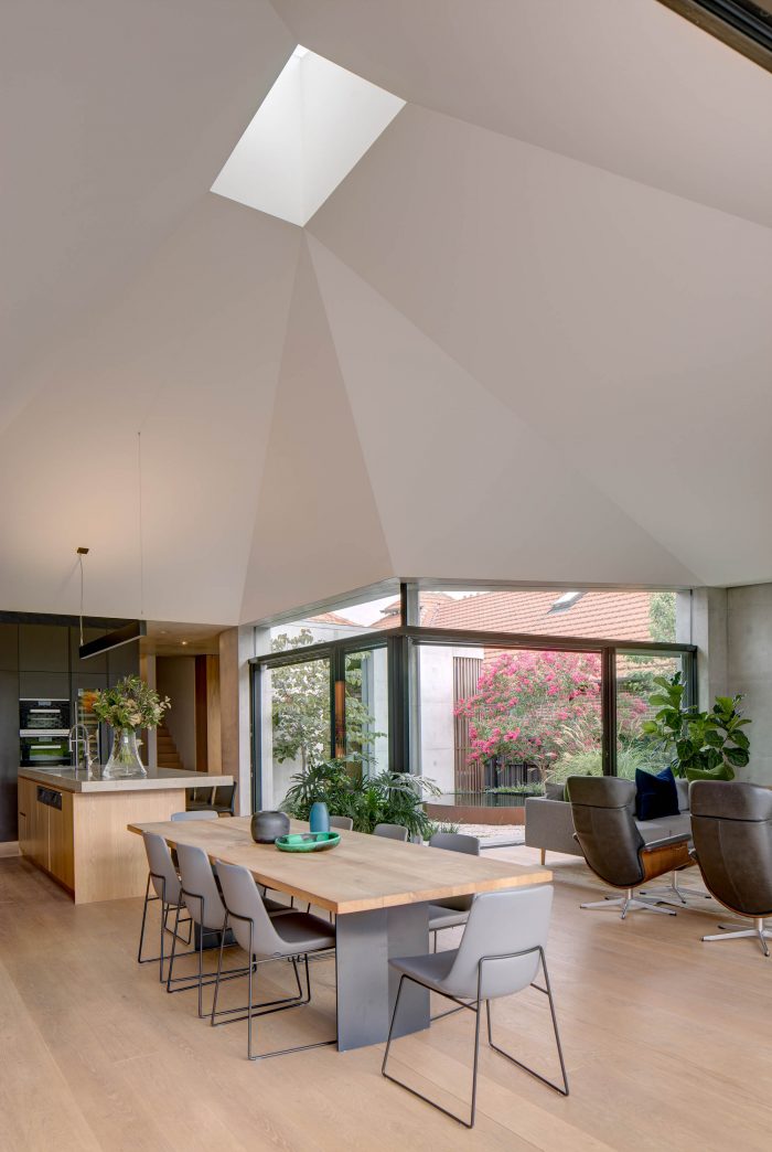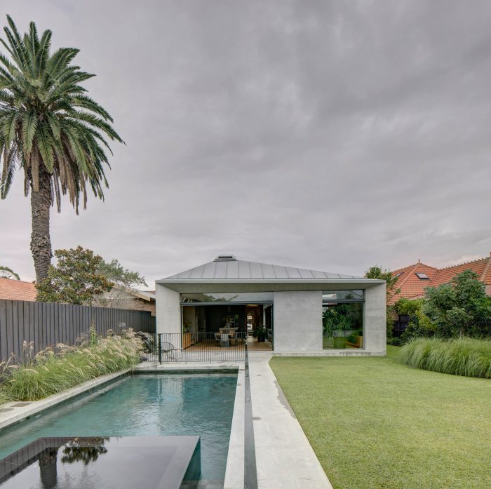 This house is an alterations and additions to a 1914 Federation style house in the historic suburb of Haberfield, just five kilometres west of Sydney’s central business district. Parts of a problematic 1990s addition have been removed and spacious and contemporary living spaces added: open plan kitchen, living & dining room, entertainment room and attic conversion.