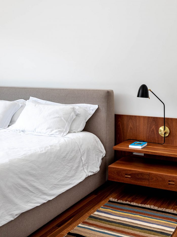 正面的主要视觉改变是创造了垂直的木制鳍状物,覆盖了一组非常多样化的窗户--浴室、储藏室、洗衣区等。- 面向街道。