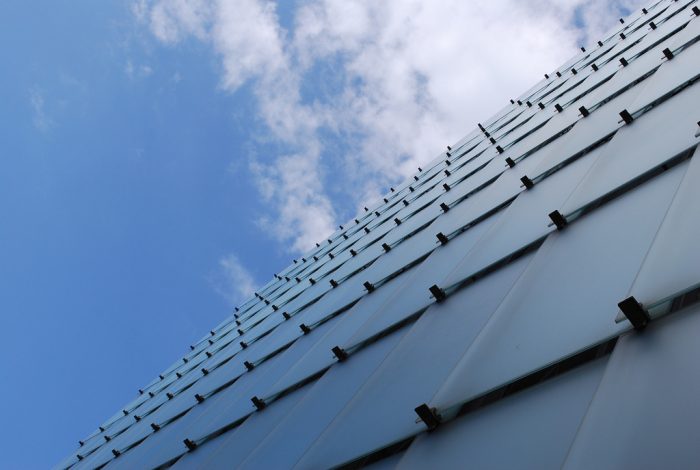 The minimalist structure stands as a light box that absorbs, reflects, and filters light across the façade and throughout the building. The facades etched, translucent glass glows as it is illuminated by the sunlight, or the interior lighting, becoming a dynamic part of the building as it reacts differently according to the light, time of day, weather, and the surrounding context.