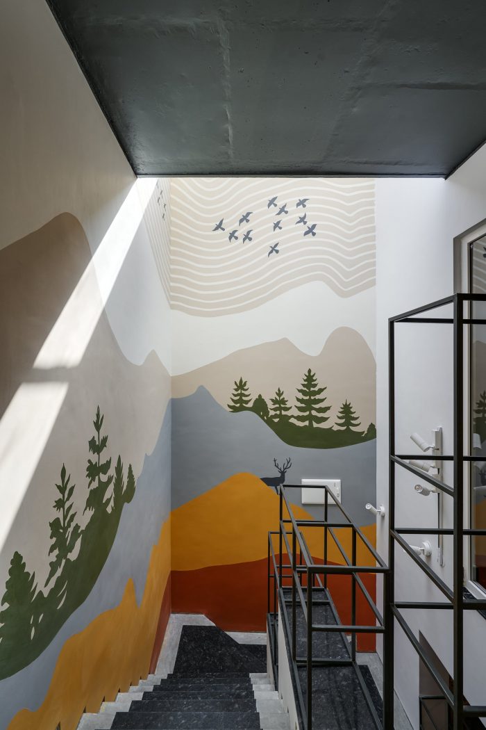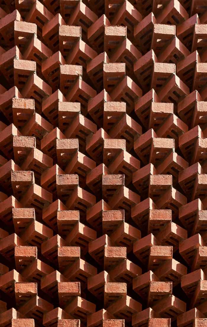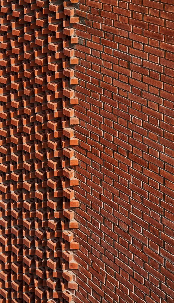 砖织屏风的创意设计是在其轴线上以45、90、135度旋转砖块,防止鸽子/鸟类和雨水进入,同时保留足够的光线和通风,并保持隐私。砖织屏风用斑驳的阳光使公共楼梯和复式楼的内部变得生动起来,从内部建立起与街道的小的视觉联系,而从外部看则是不透明的。砖织屏风产生了多边形的空隙,在白天让六边形的光线进入,而在晚上则投射出同样的光线,因此在晚上就像一个灯笼一样照亮了黑暗的小巷。