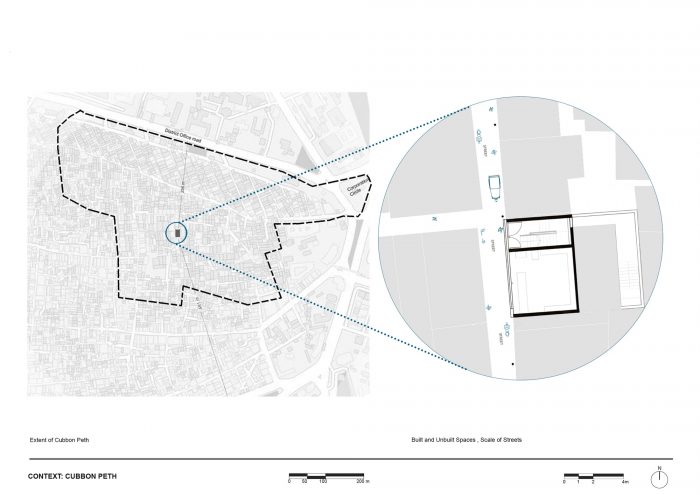 该项目是织工殖民地众多排屋中的一个,共享/相邻的墙壁。光线和通风的挑战只来自街道一侧或天空。作为对其背景的隐喻,"砖屏风 "是通过MS棒沿着外墙的栅栏 "编织 "而成的。实心砖墙和砖织屏风的结合,与周围的老城区环境相融合。