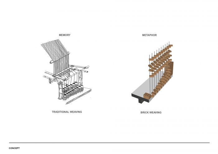 概念。Cubbon Peth在历史上是班加罗尔最古老的手织丝织品的聚居地。在后工业革命中,手工丝织艺术随着时间的推移而消失。我们敬爱的客户来自一个织工家庭,对传统的织造系统有着童年的记忆。本着保存这个故事的目的,传统织造的理念转化为砖头织造,因此,我们创造了砖头织造屋。