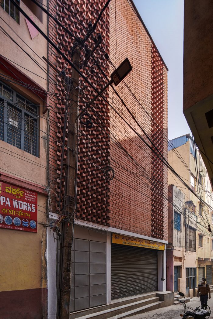 Overview. The Brick Weave House is a home nestled in a Mixed-use Building at Cubbon pet; one of the oldest and busiest localities of Bangalore, India. House sits on a 24ft wide / 16ft deep plot, abutting an 8ft wide tight, and busy access path to its South. It is the most unique among the neighboring row houses having been designed with an attractive and functional brick-woven screen.