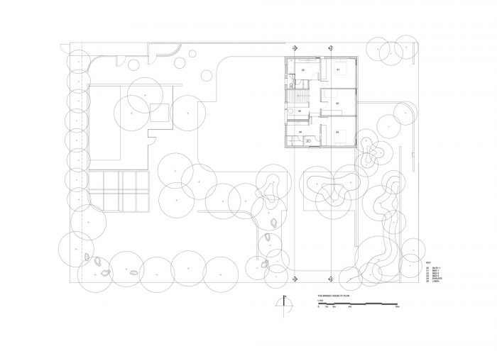 作为一个主要的回应,原来的混凝土外墙细节已经从原来的建筑上延伸开来,形成了主撤退的 "皮肤"。摒弃了传统的策略,即在后面增加一个双层楼,这个主翼由地面上的私人玻璃桥进入。一个弯曲的护罩将主床从邻居的视线中隐藏起来,但保持了与自然和光线的联系。- 这是一个贯穿始终的优先事项。