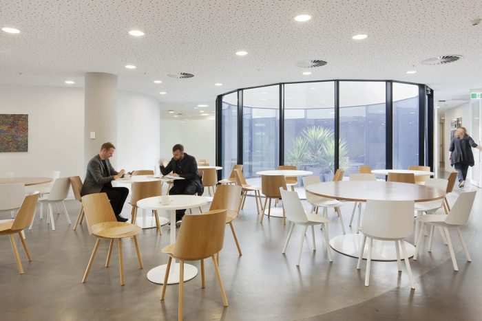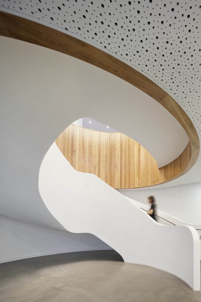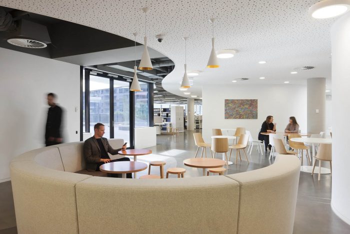 “The mobius wraps the social heart of the workplace, around which an infinite loop of movement is generated, creating and containing energy and encouraging use by all.” says Woods Bagot Associate Kylie Holton.