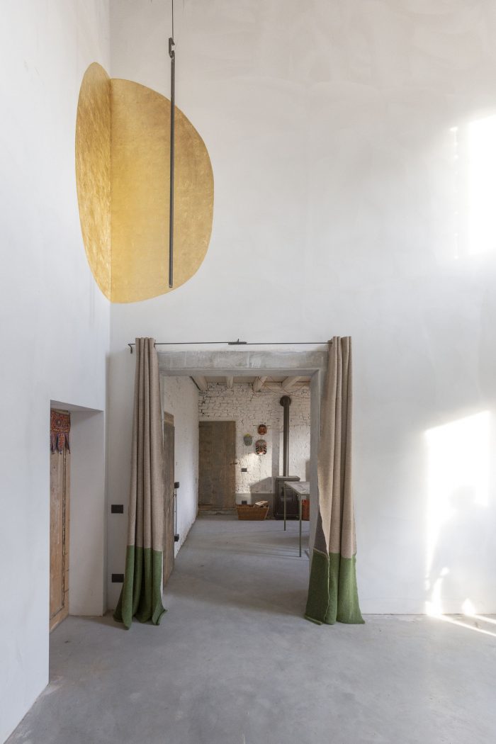The dwelling is emptied, keeping the naked structure, for having two double-height environments. We design some frugal object, just like some iron lamps and a concrete kitchen, to try to keep alive the sobriety and the simplicity of the existing building, even if with new freedom.