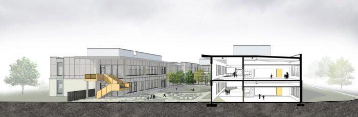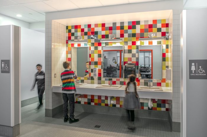 To become familiar with the parameters, a process of community asset mapping revealed the reliance of residents on the building and site for organized sports and neighborhood gatherings. When asked, parents and teachers conveyed a sense of pride in high student participation in arts programs, and the children asked for a school with bold colors, big moves, and a sense of “wow!” Neighbors hoped for an understated, sophisticated solution to compliment the context of single-family homes.