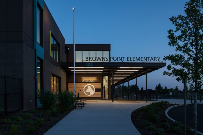 In the design of Browns Point Elementary School, the school district client sought a future-thinking, multi-use facility, calling for - among other criteria – a design to enhance personalized learning for students; ease professional collaboration among staff; and encourage compatible use by organizations in the effort to 1. supplement learning and strengthen social connections within the schools, and 2. promote public utilization of buildings beyond school hours.