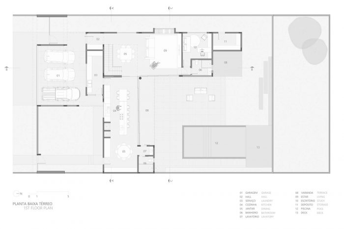 The BTT House is located in a quiet wooded residential area in the city of Toledo/PR, where the landscape builds natural murals in all the plot directions. The implantation of the building aimed to capture the best of these aspects. The clients are a couple and a young son with the desire to increase the family. The main demand was to create comfortable and spacious spaces to receive guests. From this, it was created a social area on the ground floor consisting of a living room, dining room, and kitchen all integrated but with the possibility of being divided when convenient. All these rooms, besides communicating with each other, are also open to the outside through large sliding glass doors, which, when opened, dissolve the limits between interior and exterior.