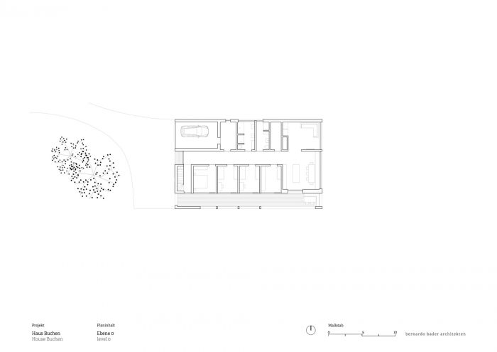 Following this tradition, the Buchen house is also allowed to attract attention with the concentration on form, its dimensions, and its unity. A strong motif of the house is that of the landscape and the evolved topography. We made sure to keep the interventions in the building as small as possible. Instead of a basement, which requires both excavation and retaining walls and concrete, a truly large attic space is offered. This approach disciplines the least possible earth movement and helps the designer to place the houses precisely in the landscape.