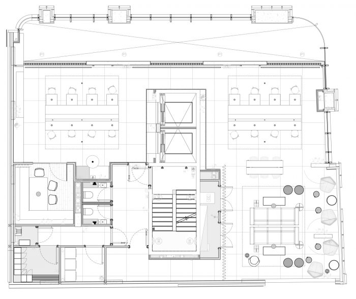 为了获得最大的热能和声学效率,皇冠的围护结构是一个双墙组件,外墙既是窗台又是护墙。我们提高了护墙,以完全覆盖屋顶上的所有设备,同时其半透明性产生了一个扩散的、温和的建筑顶部到天空的终端。能够同时设计外部和内部,为我们提供了一个很好的机会,利用我们创造的建筑优势,从内部和外部策划一个真正的综合体验。在项目的公共空间,这种由内而外的整合是最基本的。