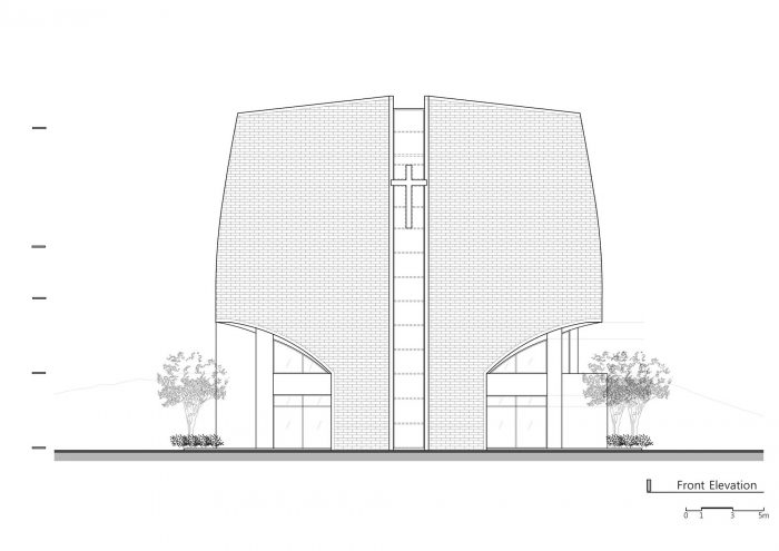 'One cross', ‘one silhouette', and 'one light' became the central concept to make this a one and only being. The one and only space creates new relationships by opening itself up to the surroundings. Although it is not located on the dead center of the campus, it is expected to be the center of one's heart as the light fills up the surrounding space, which brings a holy atmosphere.