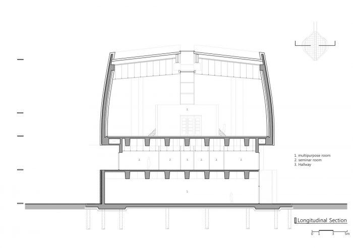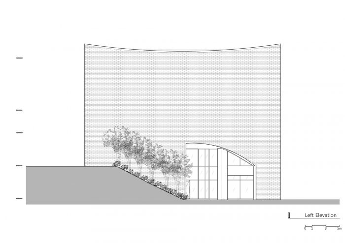 Our senses open up when we sense a silence in a campus filled with sound, or when we feel darkness in a bright space. In this space time, a soundless force strongly gestures to us. Intension of the design for the BUFS(Busan University of Foreign Studies) Chapel is to create a silhouette towards the entire campus, which stands for the ideology of the school.