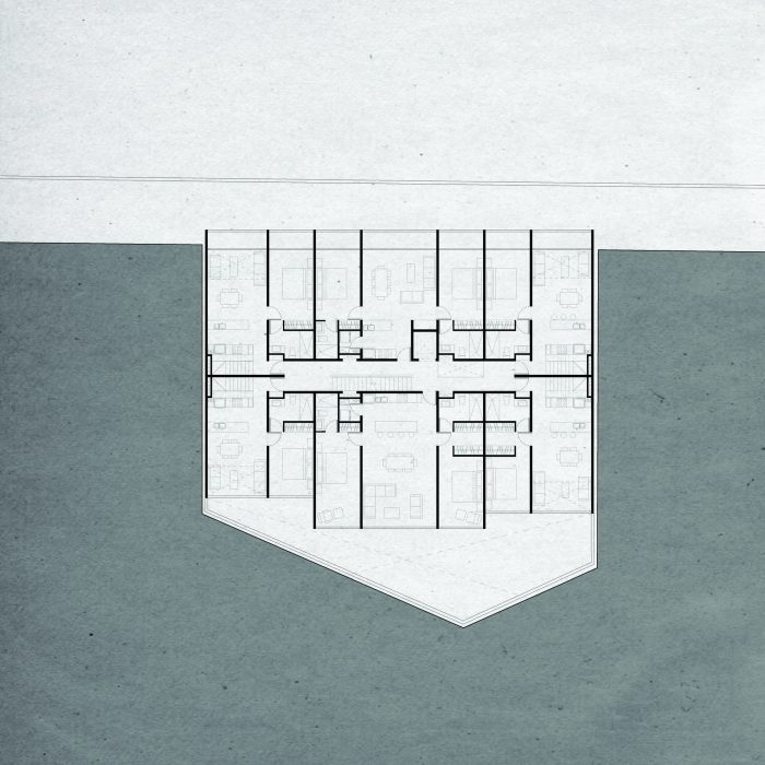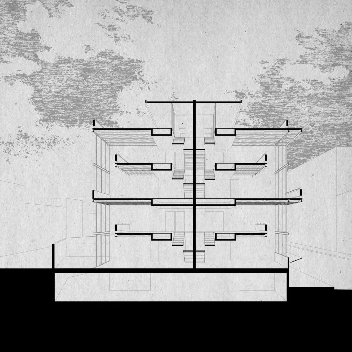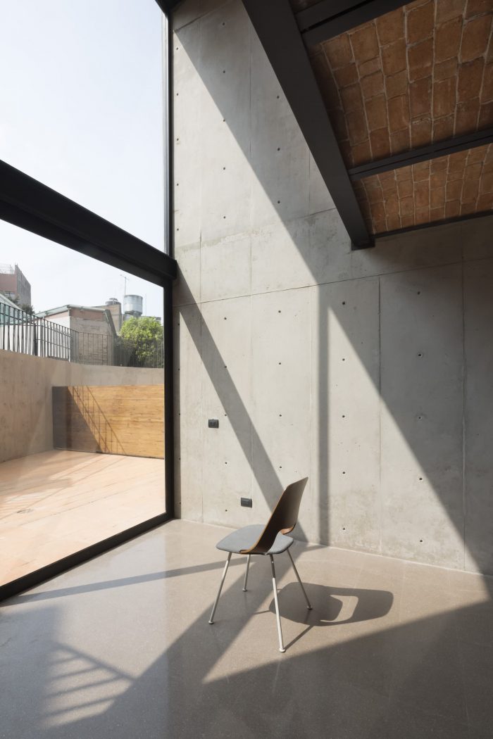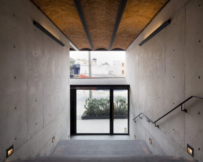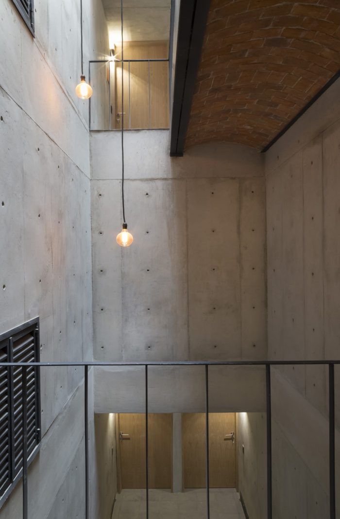 The project has a very clear integration between space and structure. All the materials are used in an apparent way to emphasize their plastic characteristics. The functional scheme of the habitable units allowed to have a clear scheme of constructive systems, which consists of: a central circulation with double heights and entrance of light to the center of the building, this one with metal structure and roofs of brick vault; around the circulation are the accesses and core service with kitchens, bathrooms and washrooms, load-bearing walls of apparent concrete and solid slab of concrete for the installations; finally, towards the front and rear facade rooms with double heights, rooms and dining rooms with walls of apparent concrete load and brick vaults.