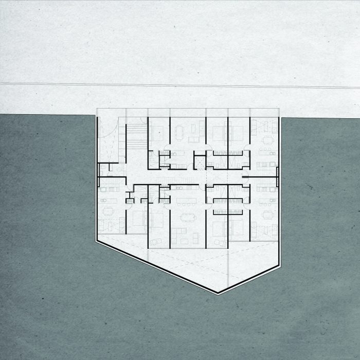 每套公寓被分为两个可居住的模块,一个包含客厅、餐厅和服务核心,而第二个是带壁橱和浴室的房间。该项目被编织在一起,可以有一个、两个或三个卧室的公寓,其中一些公寓(有街景的公寓)辅以外部露台,而其他公寓则有一个迷人的屋顶花园。