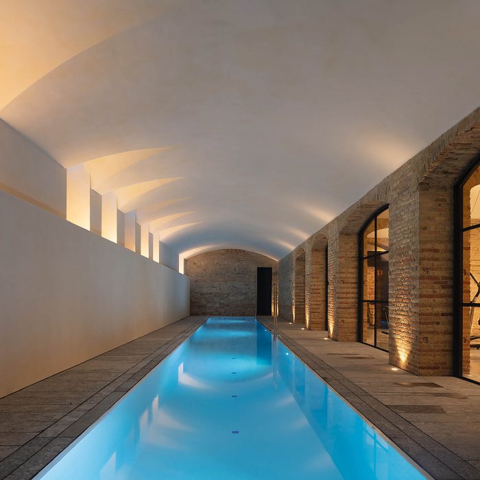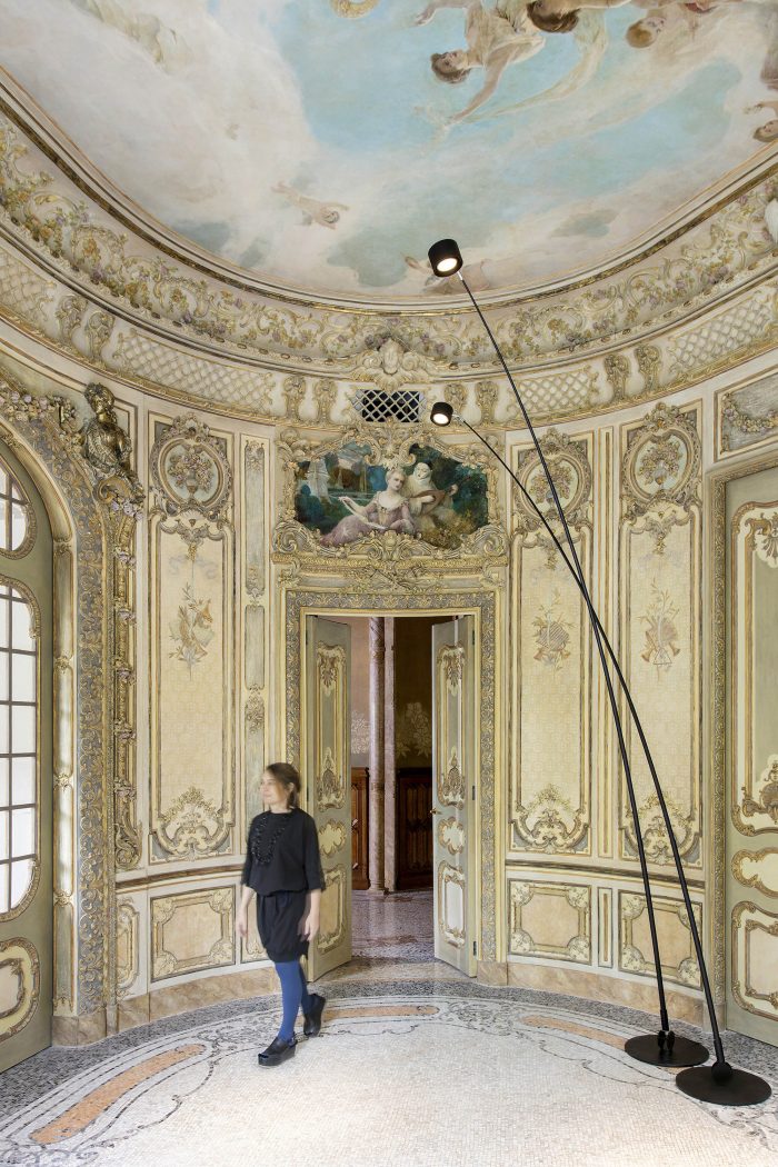 - Main floor: The goal was to enhance the architectural and artistic heritage of the palatial spaces. The original elements were meticulously restored and accompanied by new serene and simple elements, without competing with preexisting elements.