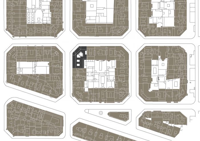 2º Subdivision of the original dwellings from 3 units/floor to 6 units/floor, maintaining the cross ventilation through the interior courtyards.