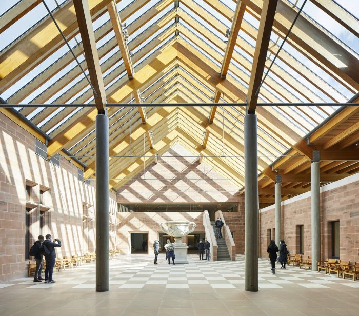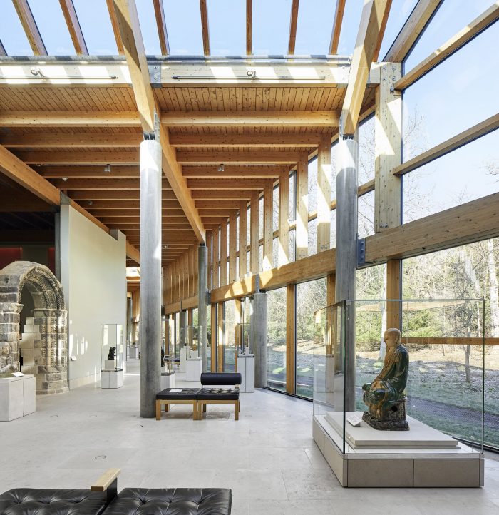 John McAslan + Partners designed the landscape for The Burrell. This was led by Andy Harris, Head of John McAslan + Partners’ Landscape and Urban Design Studio. He describes the practice’s approach, “The relationship between building, parkland, and woodland was an iconic narrative in the original 1980s design proposal. Our ‘updating’ of the landscape respects the original design vision whilst carefully integrating new elements to engage with a new generation of visitors..”