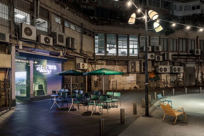 灯具和点亮的标志牌也是海关设计的,采用了冷白色的LED灯光。冰淇淋画廊的干净空间与周围粗糙的城市环境形成对比,提供了一个安静的度假场所。