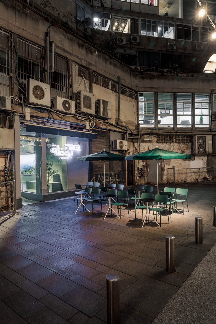 这种特殊的绿色阴影参考了布扎所来自的绿色风景。同样的加利利自然景观也被展示在一个3米长的大灯箱上。空间的颜色也是为了配合新设计的冰淇淋杯和包装。在商店的长墙上,展出了一系列的五张抽象海报。它们是由Evian-Saggi工作室创作的冰淇淋灵感的艺术作品,该工作室是为包装做重新品牌设计的平面设计师。