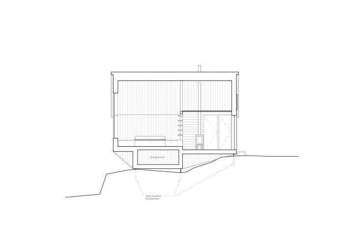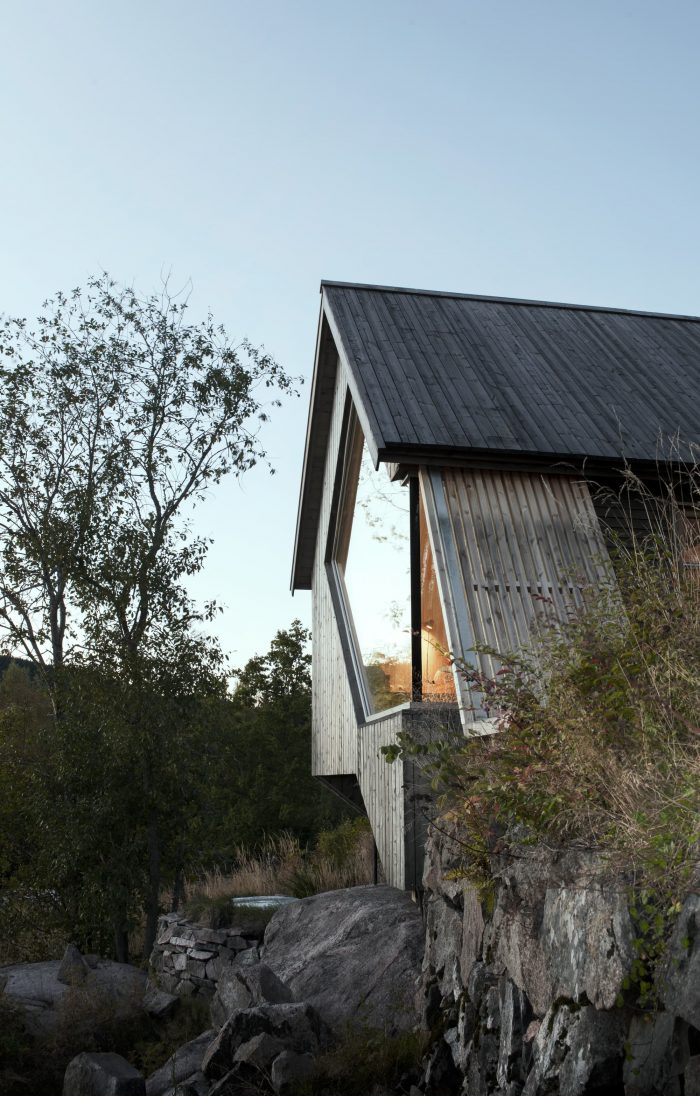 In addition to the restricted size of the building, the environmental impact on the site is further reduced by the foundation technique. By the use of steel bolts inserted into the bedrock, the foundation is limited to six small drilled holes. This means that, if wanted, the cabin can easily be removed and the site can be as good as fully restored with minimum effort.