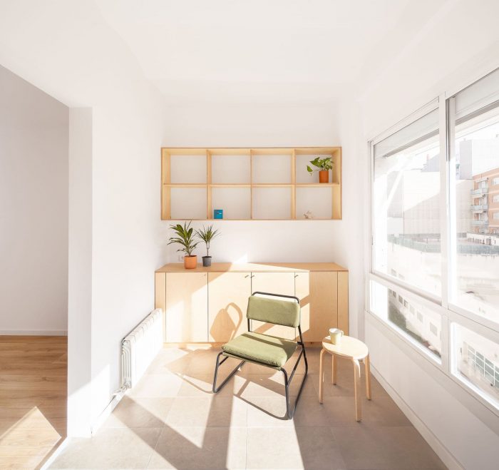 The intervention in the house is based on making the most of the best possible space, a closed gallery, facing south-east, very spacious. The wooden exterior carpentry had already been replaced in a previous renovation by another aluminum with thermal glass and it was considered reasonable to keep it unchanged.