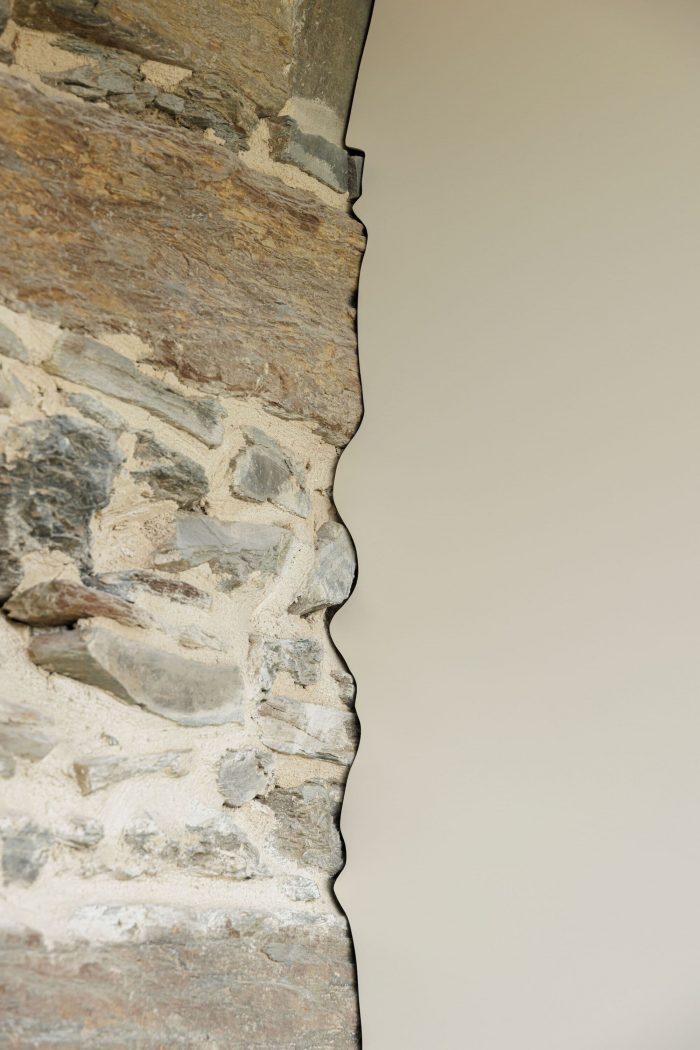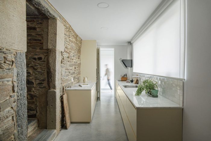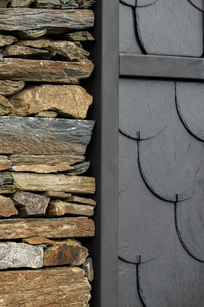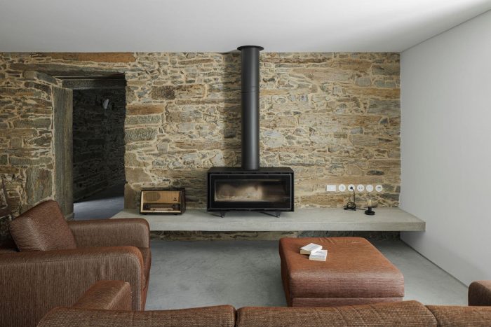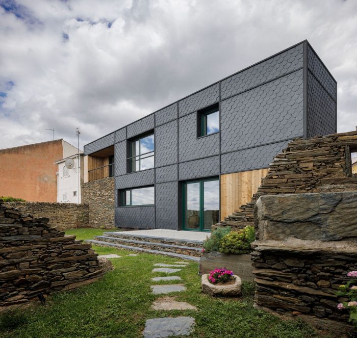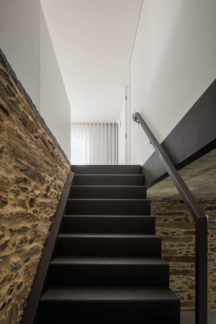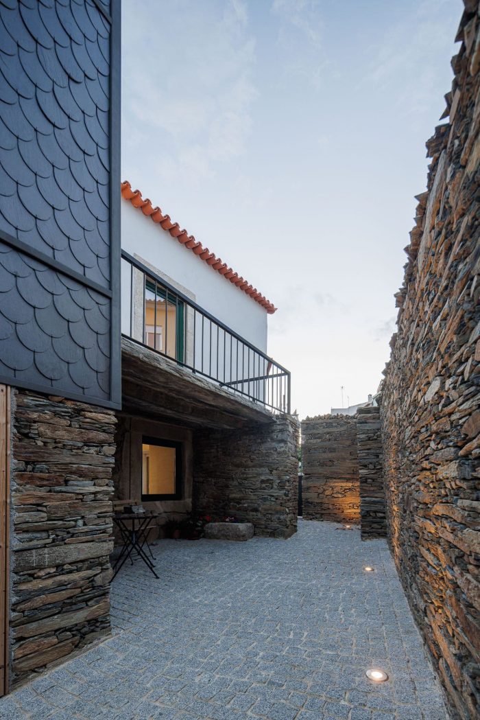 It is on the basis of these two notable elements (slate and shale) that it is proposed to reconfigure space and elevation, still responding to the traditional method of construction, which seeks to highlight the back elevation, directed to the south, and to assume it as the new main elevation of the dwelling.