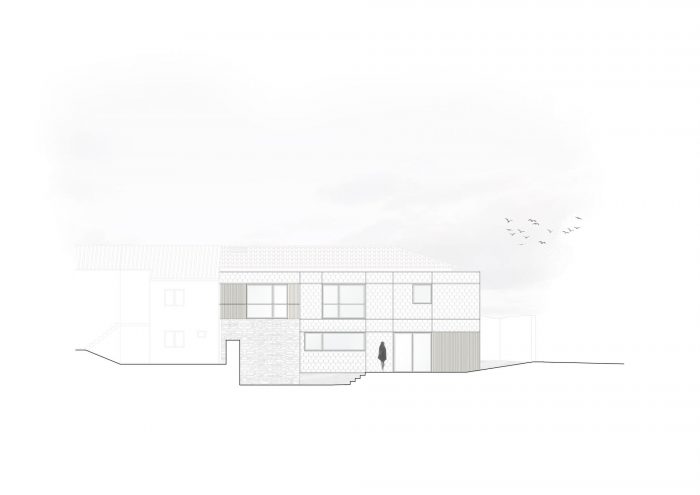 正是基于这两个显著的元素(石板和页岩),我们建议重新配置空间和立面,仍然响应传统的建筑方法,寻求突出后立面,指向南方,并将其作为住宅的新主立面。