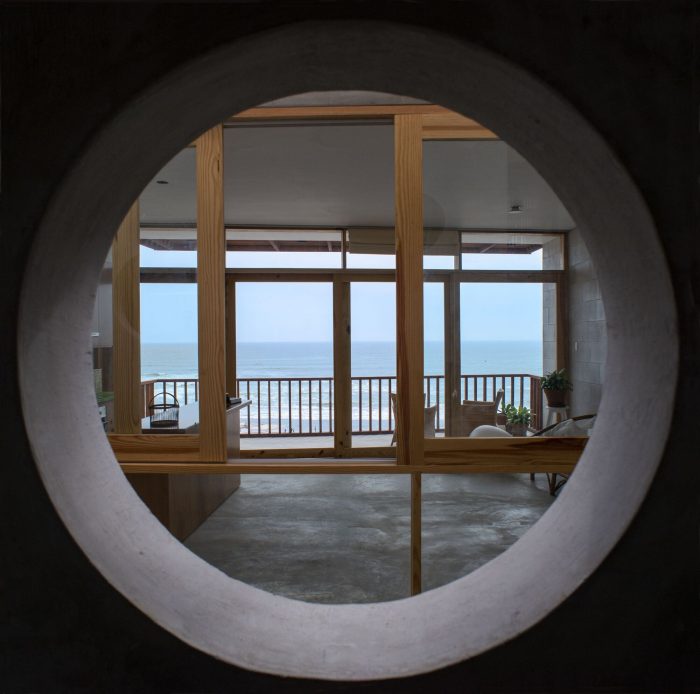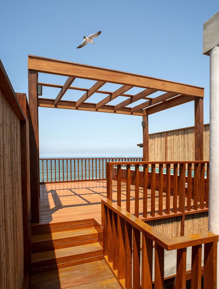 This project starts with an assignment by four people, two couples, a filmmaker, a psychotherapist, an anthropologist, and a dancer, who regularly go to Los Pulpos spa, located 40km south of Lima. They want to enjoy their days together on the beach. The result of the project is two houses that touch each other with simplicity and elegance, a dialogue between local materials and the landscape, between the transparencies and the views of the sea. A vertical journey through the different levels until reaching the roof where you can watch the sunset while swimming in the pool. Casas Calx project is located in front of the Pachacámac Islands, the habitat of numerous species of seabirds, known for their biological diversity in the marine-coastal ecosystems. This spectacular location, together with the topography, inspires the distribution of the houses, which are designed in two blocks around a central patio where different plant species live, and which allows all the rooms to have natural lighting and ventilation.