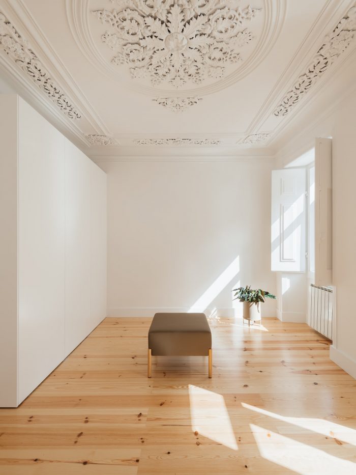 该项目的目的是要使改造能够加强现有的,即天花板的工作,天花板和墙壁之间的装饰框架,或旧的餐具柜,从而设法恢复和建立一个阅读的新元素,谨慎地出现,但本质上,如铁,加强结构,正确的线条的木工和其他。有了必要的自主权,新的设计融入了整个房子的逻辑。