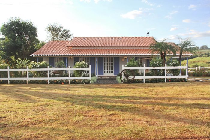 The client's desire was to finish the house that had been abandoned due to lack of resources. Located in Campos Gerais, a coffee-growing region of Minas Gerais, the residence had to be designed using already built walls and roofs. The architectural party told by them was clear: "a white farmhouse with blue windows, and a large table to receive friends and family". Based on these premises, the idea was to value the local culture, especially through its furniture, craftsmanship, and accessories.
