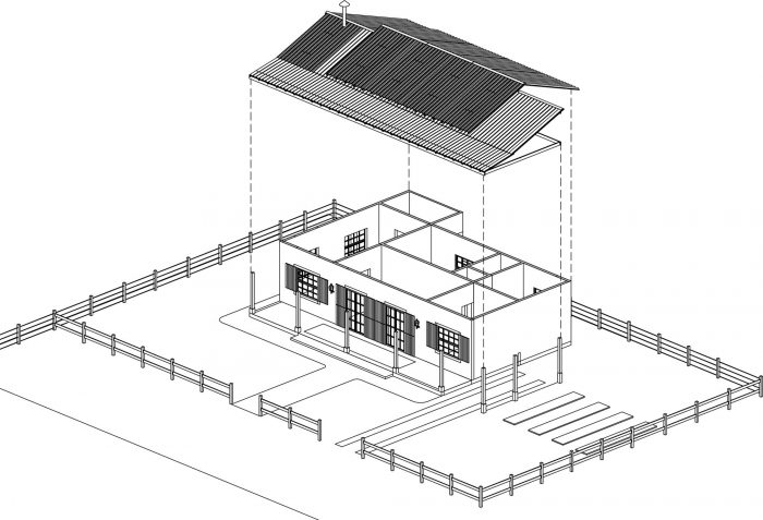 传统 "农舍 "的美学和功能问题意味着对预先设想的空间进行调整和扩展。柴火灶被安置在厨房旁边,以避免房屋的其他房间受到烟雾污染。我们改造了现有的屋顶,以创建入口处的前廊。除了保护阳光和雨水,阳台的比例,以及屋顶的差异,都能赋予米内罗语言的独特性和美学属性。木柱将其重量排放在混凝土基座上,避免与土壤湿度接触。受殖民时期农场的启发,最低屋顶的第一排瓦片被涂成白色--这个细节给项目带来了精致的印象。