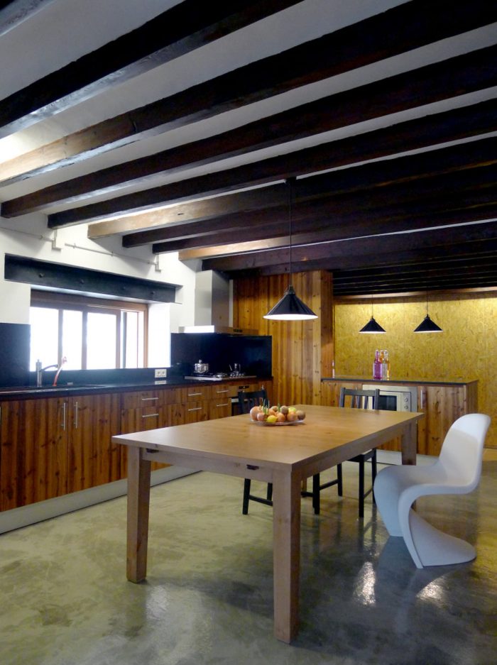 In this first stage of the Works at the ground floor of Can Fogarada, the kitchen – dining room acts as a life engine, starting point of the architecture process of Re-Inhabiting this rural house.