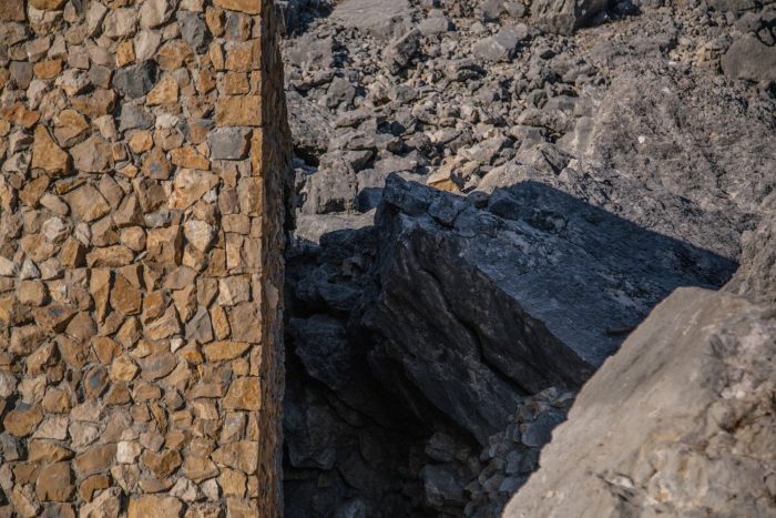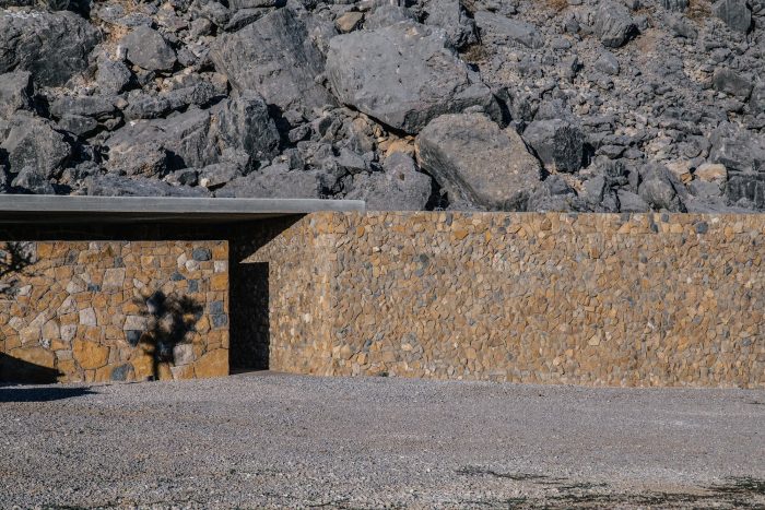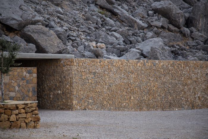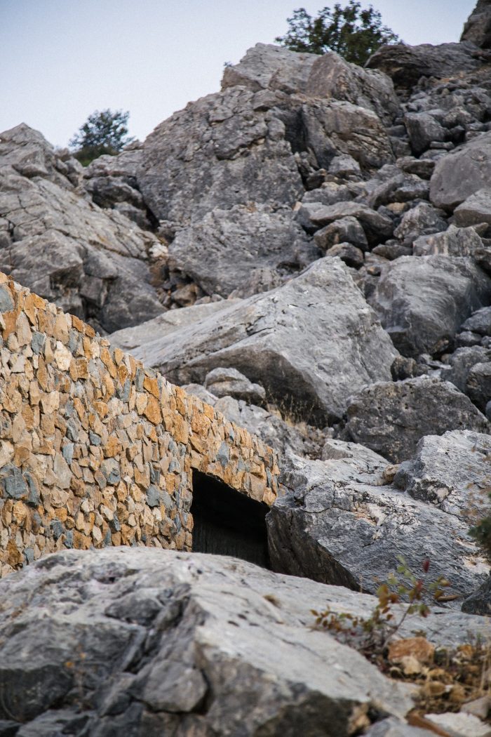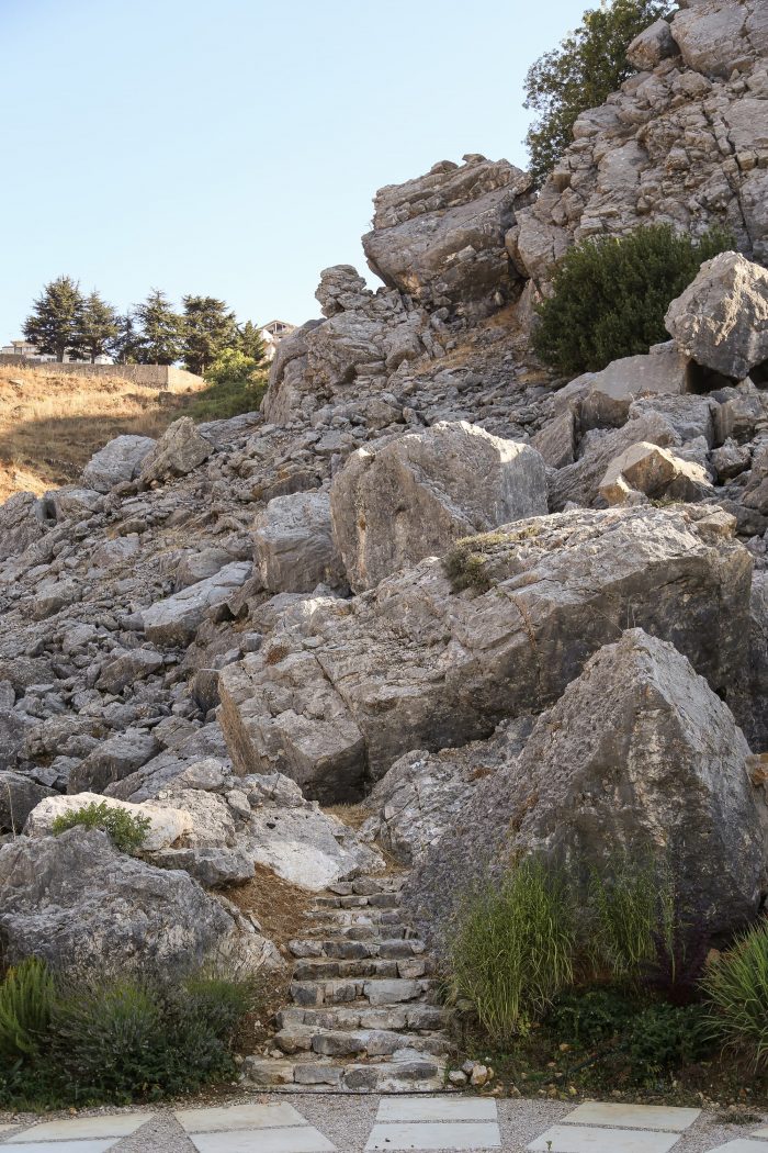 At the helm of thousand year old rock formations, housing Phoenician tombs, lies Cana Guesthouse in Bhamdoun, Lebanon. Withstanding erosion throughout the millennia, a mosaic of grey and yellow limestone encompass the entire space. This solid retaining wall partnered only with natural rock boulders, summons an archaically curious and remote façade.