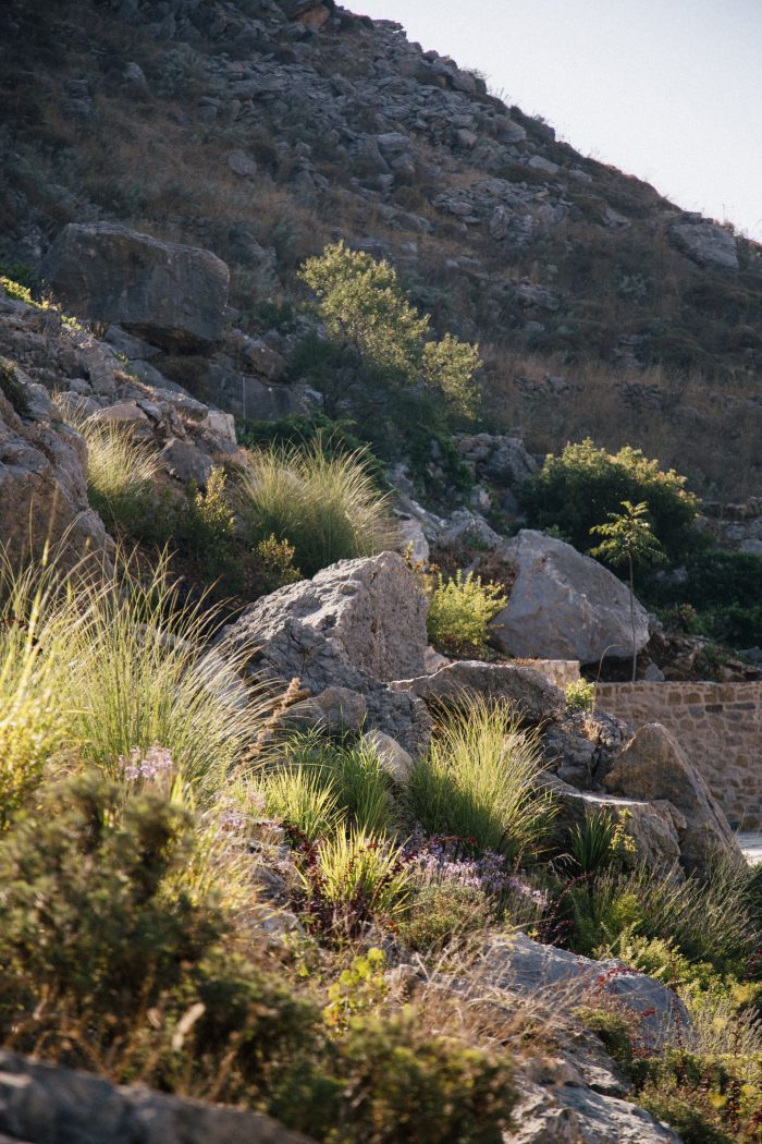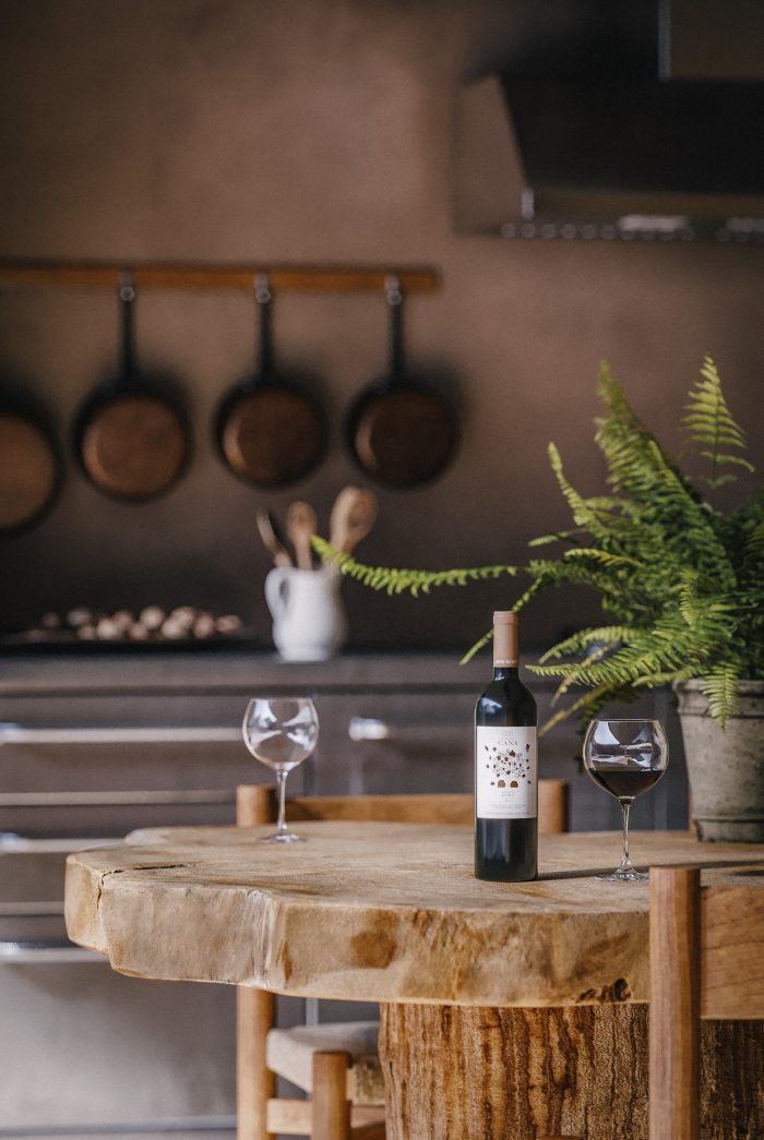 A fertile 80 acres vineyard surrounds the guesthouse, breaking from the dry stone spirit. With a rocky terroir, vines grow deep roots that gather nutrients and water from beneath the earth’s surface, allowing the wine to result in a denser bouquet. This cultivated and aromatic orchard reminds of a tranquil countryside escape. An incredibly imposing and warmly inhabitable stone monolith, this sanctuary fosters a physical and mental retreat, evoking introspective and stellar whispers from a distant time and place.
