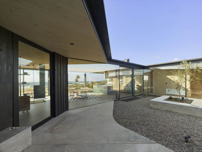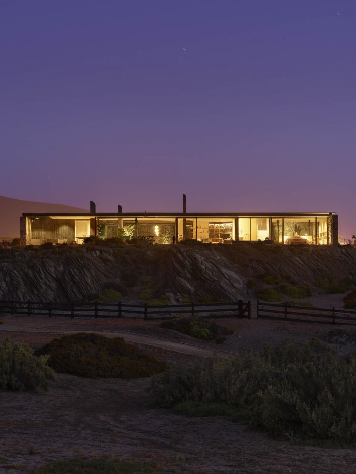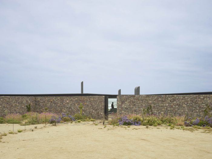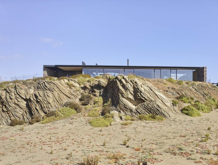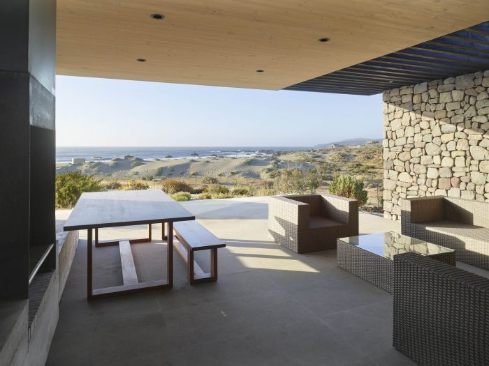 The project is defined as a horizontal line that measures the horizon. Towards the East, the hermetic main façade through which you enter, and towards the West, completely open and transparent with the rooms open to the Pacific Sea.