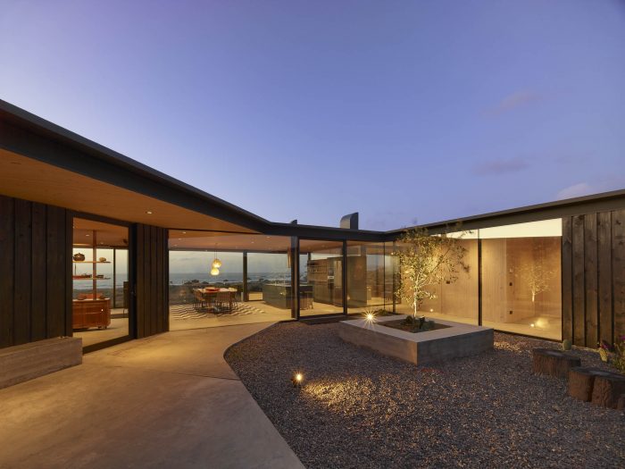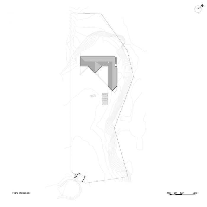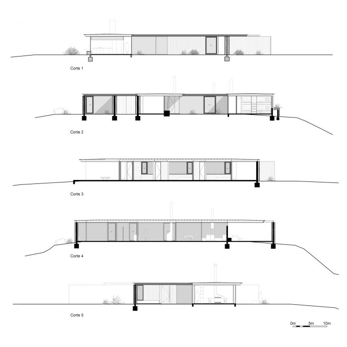 该项目被定义为一条衡量地平线的水平线。朝东,是密封的主立面,你可以通过它进入,朝西,是完全开放和透明的,房间向太平洋开放。