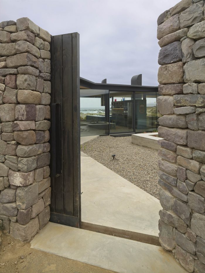 我们把房子解决在一个层面上,接近地面,不打断室内和室外的关系。然后我们把屋顶定义为一个最小的平面,支撑在50厘米厚、2.60米高的石墙上。这堵墙建在房子之前,作为地面上东方和西方的边界。这堵墙定义了天井和房子的内部,作为面对大海和小溪的空间的后盾。