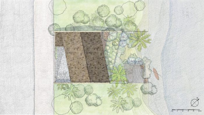 Blurring Boundaries: Bringing the riverbank’s landscape as close to the living space as possible. At the house-garden boundary, the arrangement of the oblique directions turns the boundary from a "stroke" to a "zone”, therefore, increasing the view toward the riverside landscape. This buffer space is the favorite of the homeowner and is used most of the time. Alternating the elements makes the architecture-landscape boundary look more “organic”, human activities are therefore embraced and protected.