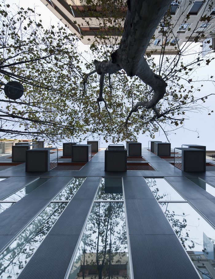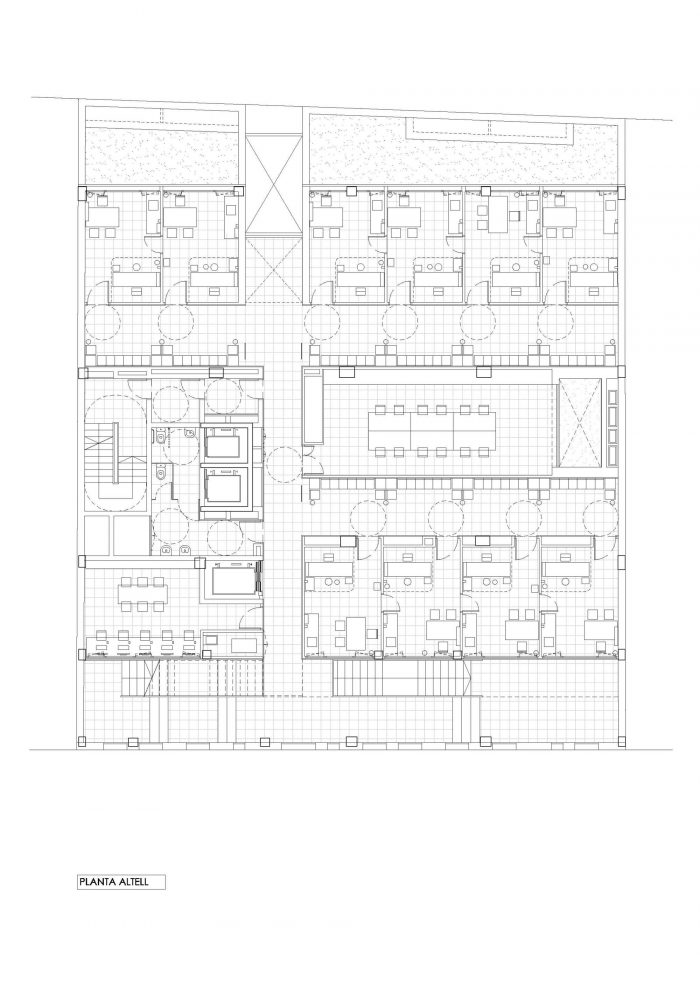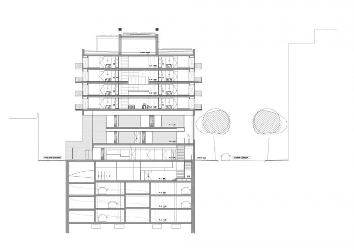 The center is located on the border between the “Ensanche” and the “Gracia” neighborhood within an existing building that includes three different uses: 32 dwellings for elderly people, Primary Care Center and parking for 44 vehicles.